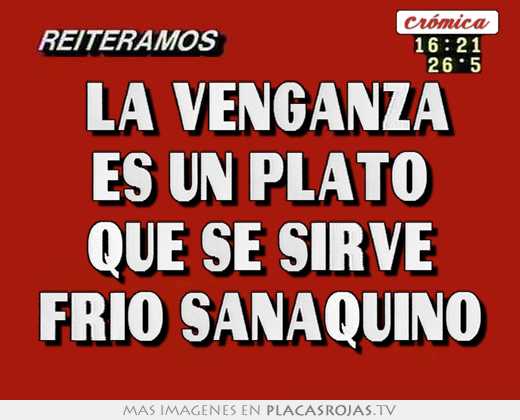 "la venganza es un plato que se sirve frio sanaquino Compartir en Facebook Compartir en Twitter 320 vistas Creado por Adam hace 1 año Reportar contenido Deja un comentario
